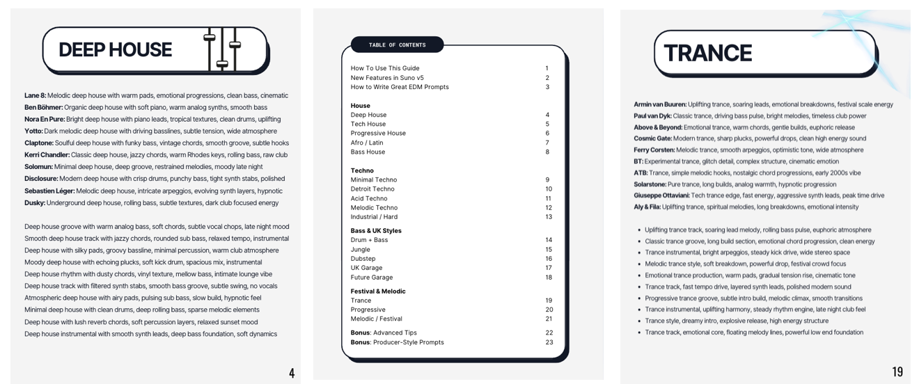 Unlock 200+ hand-crafted prompts covering the full spectrum of electronic music. This guide is built for hobbyists and intermediate creators who want professional-sounding EDM, techno, and club tracks using Suno v5.