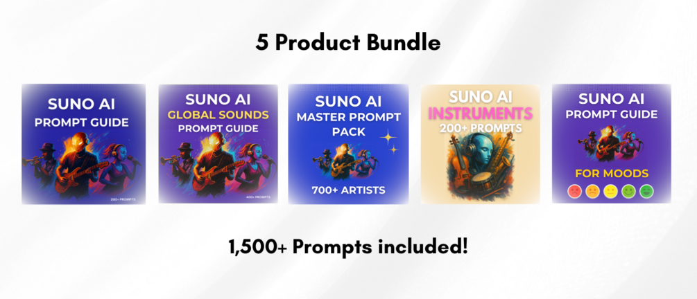 You'll get all 5 Suno AI guides (100+ pages, 1500+ prompts)