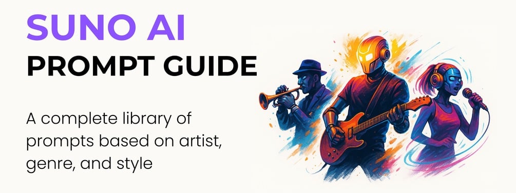 You'll get a 25-page PDF packed with 250+ Suno AI music prompts, organized by genre, era, and creative style.